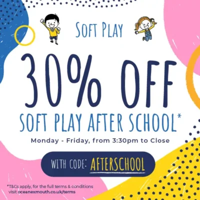 Make after‑school afternoons extra fun with 30% off Soft Play! From Monday to Friday, between 3:30pm and close, enjoy discounted entry when you use code AFTERSCHOOL.